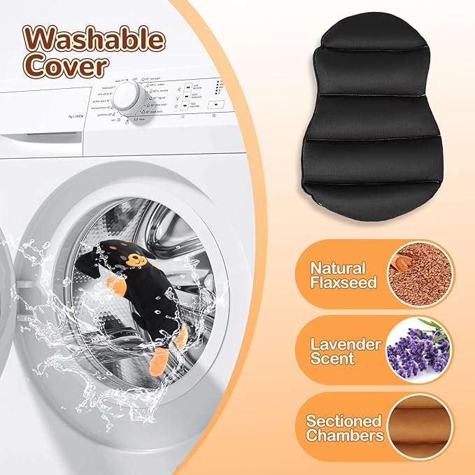 - Natural Filling & Safe Use: The lovable 16" x 11" Rottweiler Bruno cover comes with removable insert which is filled with flaxseed, releasing comfortable moist warmth and penetrating to your painful area. Lavender lend a floral and fresh fragrance to calm you, soothe you as well as relieve your headache and improve sleep. The cordless design are much safer and more convenient, and it could be freely taken to anywhere.