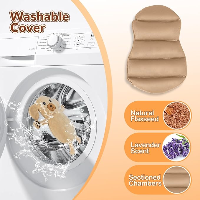 - Natural Filling & Safe Use: The lovable 16" x 11" Golden Retriever Rocky cover comes with removable insert which is filled with flaxseed, releasing comfortable moist warmth and penetrating to your painful area. Lavender lend a floral and fresh fragrance to calm you, soothe you as well as relieve your headache and improve sleep. The cordless design are much safer and more convenient, and it could be freely taken to anywhere.
