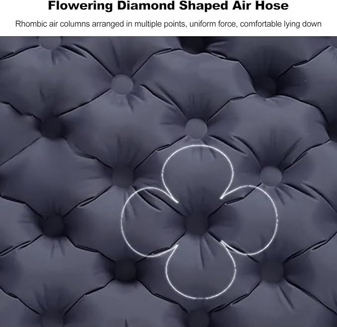 - 【Comfortable camping pad】 The diamond-shaped air tube can disperse pressure, the diamond-shaped air column is arranged at multiple points, the force is even, ergonomically supports all pressure points, lying comfortably lightweight travel, foldable and easy to carry.