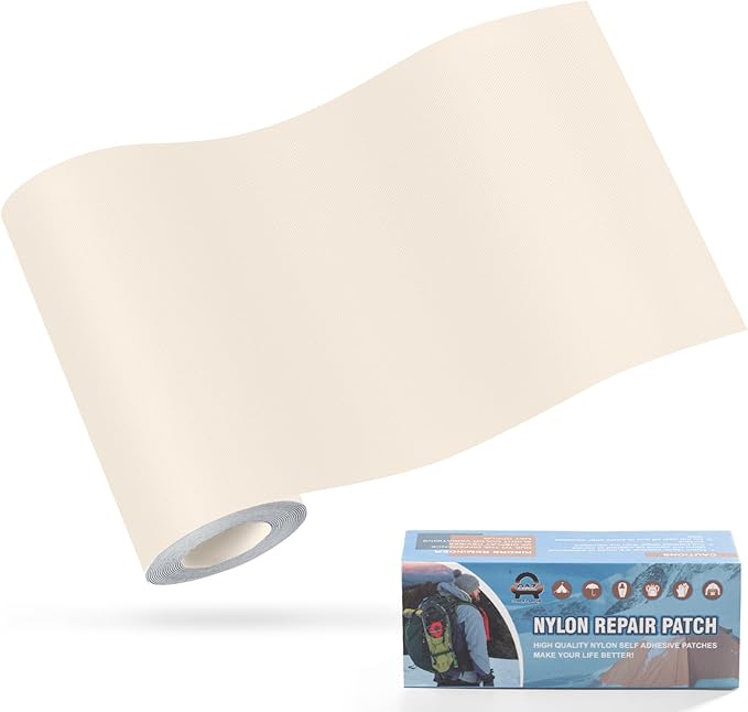 OAZ 3.9 x 63 inch Nylon Fabric Patch Kit - Self-Adhesive, Waterproof, Lightweight Repair Patches for Clothing, Down Jacket, Tent, Bag (Beige White)