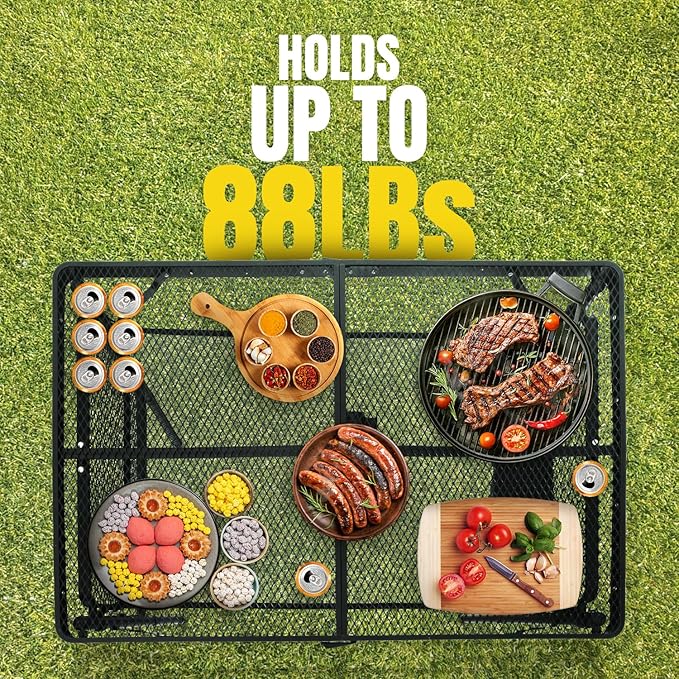 - OUTDOOR BBQ GRILL TABLE – Crafted from high-quality metal mesh for superior stability and durability. Supports up to 88 lbs on the tabletop.