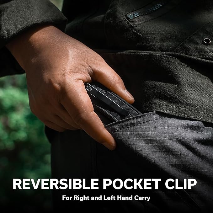 - Snappy Action: Utilizing a ceramic ball bearing pivot, the pocket folding knife opens effortlessly via the flipper and thumb stud. The liner lock mechanism ensures safe and easy closing