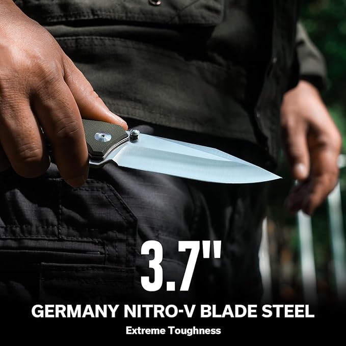 - Ultra-sharp Blade: Equipped with a 3.7 inch German Nitro-V blade, this folding knife is ultra-sharp. Great for completing your outdoor tasks with ease