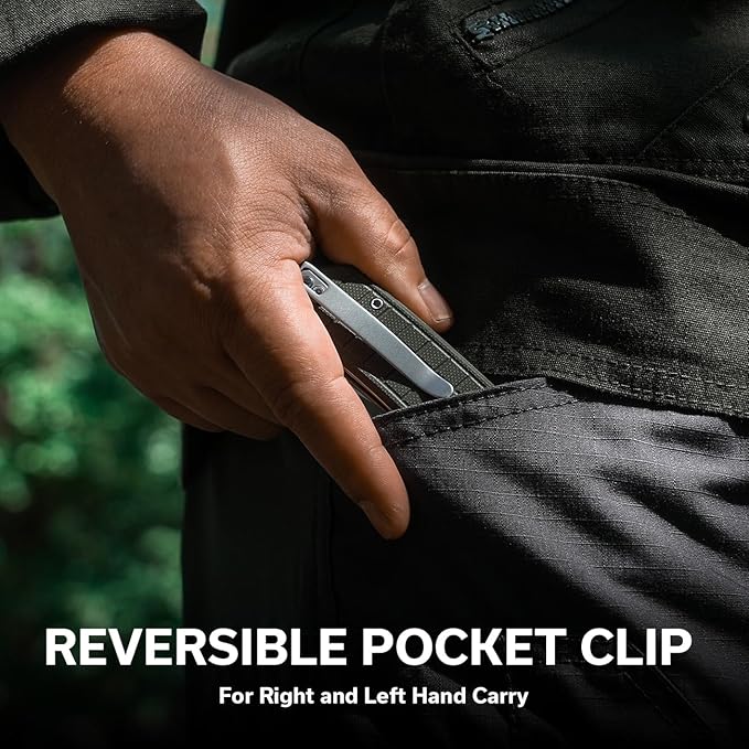 - Snappy Action: Utilizing a ceramic ball bearing pivot, the pocket folding knife opens effortlessly via the flipper and thumb stud. The liner lock mechanism ensures safe and easy closing