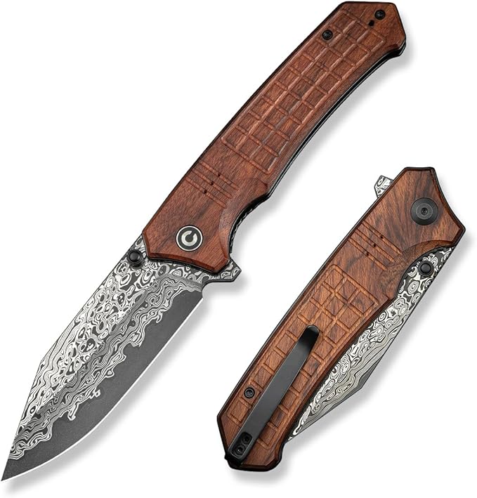 CIVIVI Tacticorix Pocket Knife for Men Women, EDC Flipper Folding Knife with 3.7" Damascus Blade Wood Handle for Camping Hunting C23055-DS1 (Wood)