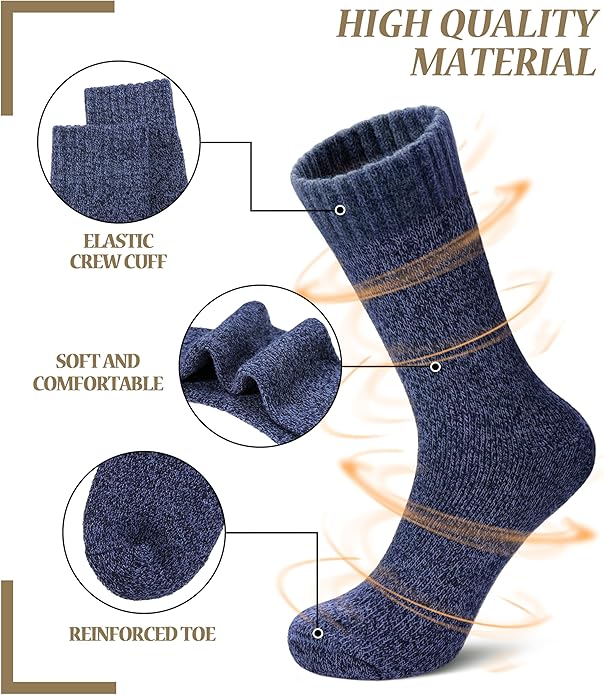 - Cozy and Warm: Thes wool hiking socks is blend of 45% Wool, 30% Cotton, 20% Polyester, 5% Spandex. the socks are very soft, comfortable, breathable, warm and durable.