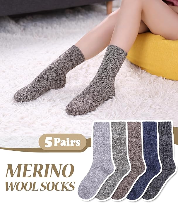 FNOVCO Wool Socks for Women Winter Warm Hiking Boot Thick Thermal Cozy Crew Socks 5 Pairs