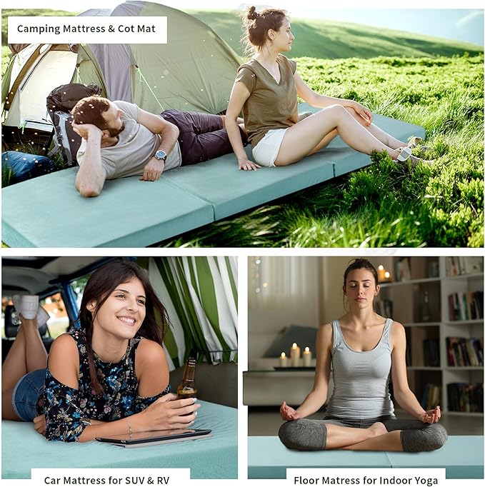 - 【Outdoor and Indoor Use】Multiple Scenarios Available. When guests visit, put the camping sleeping mat in the living room as a temporary bed for guests. On long car journeys, suv mattress camping beds can provide you with high quality in-car bedding bed that is space-saving and easy to carry. You can also use the floor sleeping mat anywhere you need an extra bed, such as children's rooms, student dormitories, camping tents and so on.