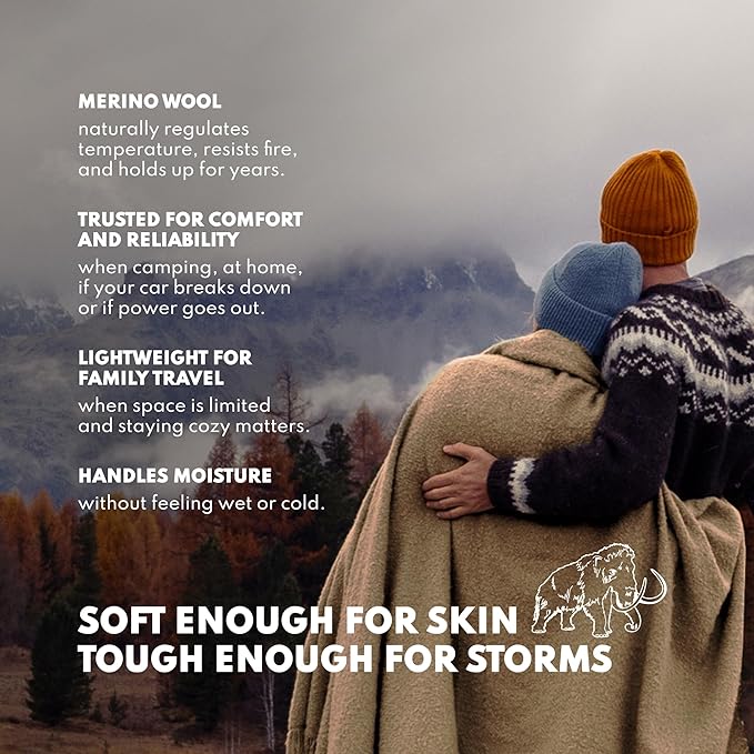 - Cozy Wool Comfort: The Woolly Mammoth camping blanket is crafted from a 50% wool blend, ensuring warmth and comfort without irritation. Ideal for keeping cozy at home or camping, it serves as a soft camp blanket for chilly evenings