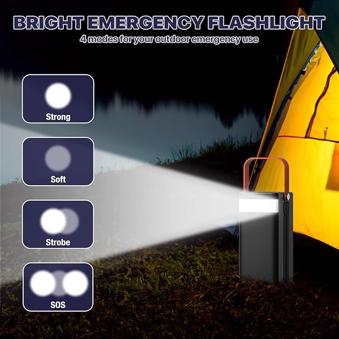 - Keep track of your power with the intelligent LCD digital display, showing accurate remaining battery. The built-in flashlight features 4 modes activated by a double-click of the button, essential for emergencies like hurricanes and power outages. Its versatile design ensures you're always prepared.