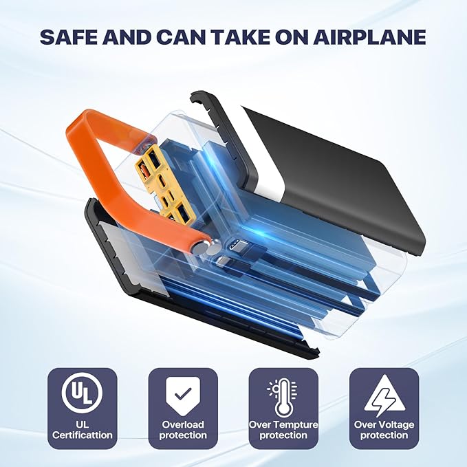 - PD 22.5W Rapid Charging - Embrace the future of fast charging with this power bank, featuring SCP/FCP/QC protocols and a powerful 22.5W USB-C port. Charge your phone to 60% in just 30 minutes. Ideal for travel, hiking, outdoor camping, emergencies, and more.