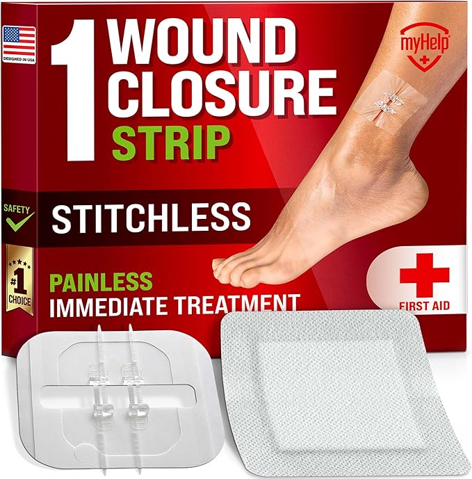 - QUICK AND PAINLESS — MyHelp emergency wound closure strips keep the wound closed providing it with strong and secure support. The butterfly bandages for wound closure help to heal small cuts in days and protect the wound from exposure.