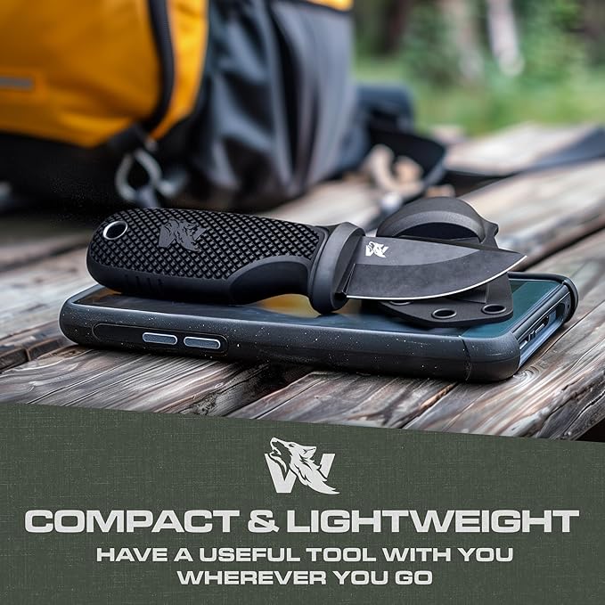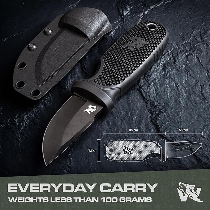 W-MINI - EDC Neck Knife with Sheath and Necklace - Small EDC Fixed Blade Knife Necklace and Belt Clip - Pocket Fixed Blade Knives - Full Tang Neck Knife with Sheath Tactical and Fire Starter