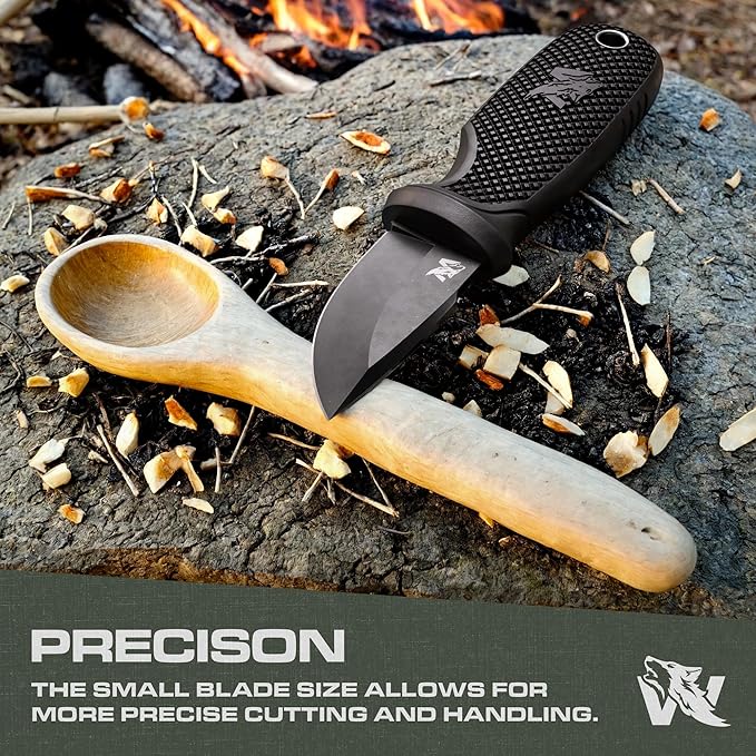 - NON-SLIP TPE HANDLE: The ergonomic handle made of non-slip TPE ensures a secure grip, even when it is wet. The small fixed blade knife with sheath is comfortable to hold and allows for precise cuts, making it an essential tool for any outdoor kit.
