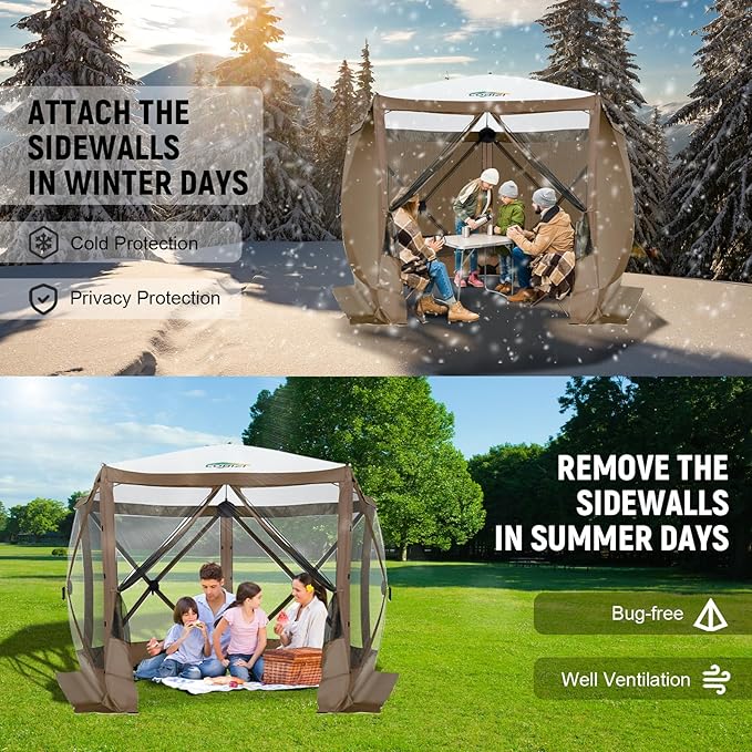 COBIZI 10x10ft Pop up Gazebo Screen House Tent for Camping, Pop-up Camping Canopy with Sidewalls,Portable Outdoor Quick-Set Hub Tent with Carrying Bag&Ground Stakes,Brown(Upgraded 2.0)