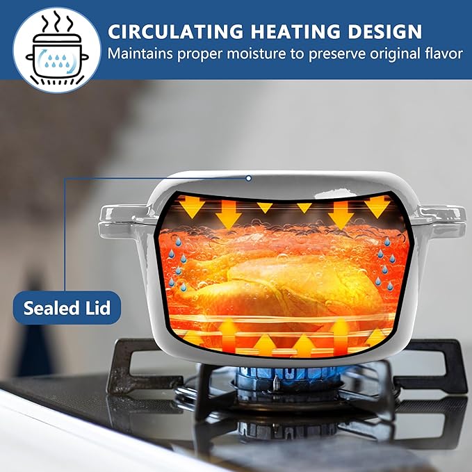 - GOOD HEAT CONDUCTION & RETENTION: Cast iron ovens have good thermal conductivity and evenly distributed heat in the pot; Covering a closed pot lid can prevent water loss from maintaining the original flavor of the food; Cast iron pot also has good thermal insulation performance, Making the food insulation time longer, Allowing you and your family to enjoy a good meal