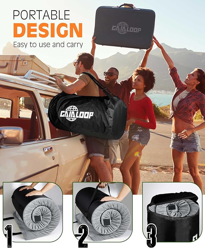 3 Inch GAIALOOP Thick Memory Foam Camping Mattress Sleeping Pad [Car/Tent/Cot] Glamping Portable Floor Mat Roll Up Futon Mattress for Guests Sleepover
