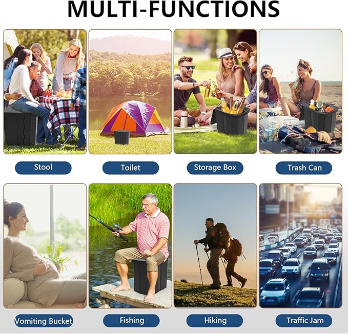 - 【Multifunctional and Widely Applicable】With lid, it can not only be used as an outdoor toilet, but also as indoor toilet for the elderly,a trash can, a storage box, a stool, a vomiting bucket, etc. to satisfy your different needs when taking outdoor activities. Perfect for backpacking, traveling, camping, boating, fishing, hiking, long road trip, and more.