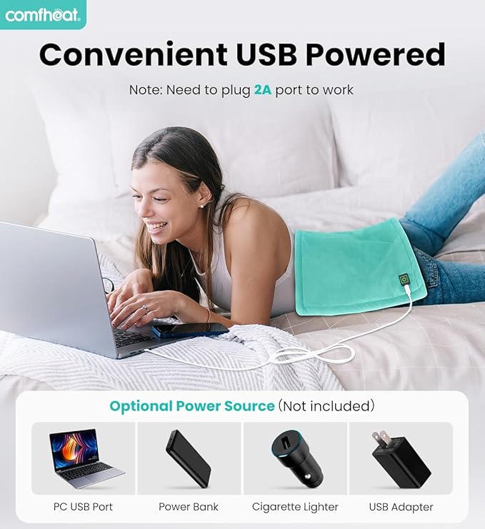 - CONVENIENT USB DESIGN, USE ANYWHERE: Our USB pulg-in heating pad is 12 "x16"; Comes with a 5.9 feet long USB cord, compatible with 5V 2A USB outlets, such as your own power bank, USB adapters, etc; This makes it easy to use in a variety of situations such as camping, fishing, stadiums or in airplanes