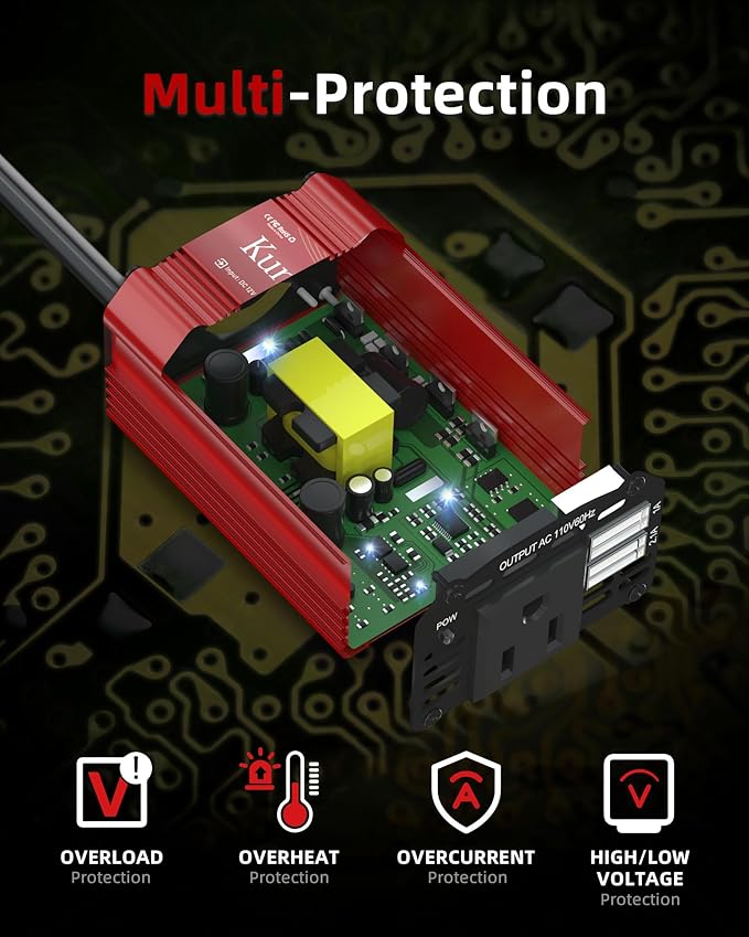 - Multiple Protection: Smart chip and fuse integrated in to stop equipment from overloading, overheating, undervoltaging, and short circuiting