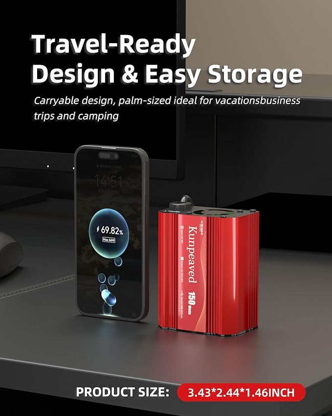 - Wide Application:The car power inverter provides 150 watts of continuous DC to AC power and 300 watts of peak power. Ideal for charging string lights, laptops, breast pumps, CPAP machines, nebulizers, game consoles, TVs, DVD players, lamps, iPads, and other electronic devices