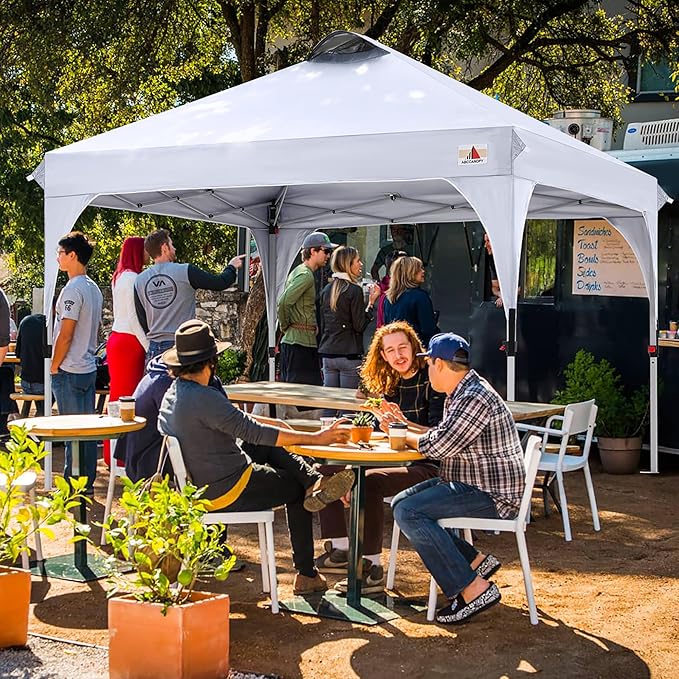 - 【Easy set up】: Set up in 1 minute in just 3 steps. With no tools required. Simply open the frame, install the canopy and adjust to your desired height with the push of a button. Equipped with a wheeled bag to organize the frame and accessories, convenient for you to carry.