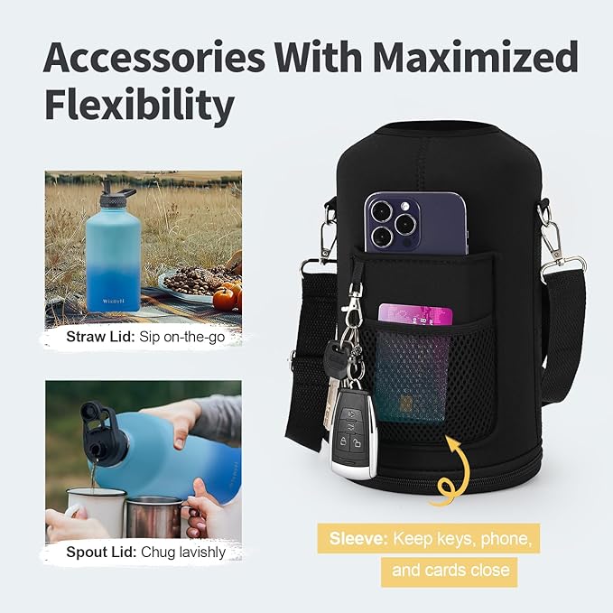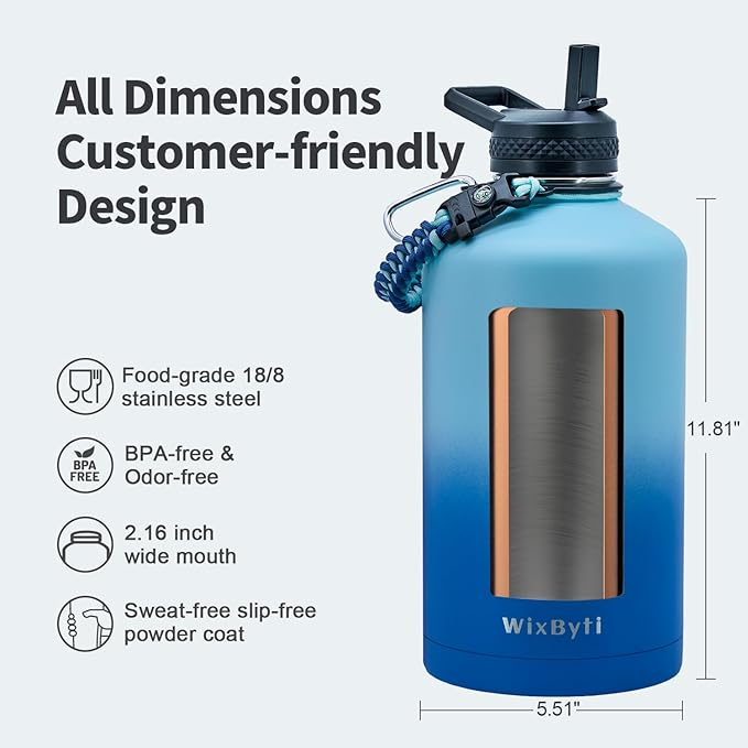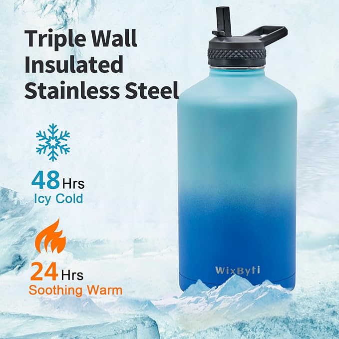 - After Services and Package: We offer continuous after-sales service against leakage and poor cold/hot-keeping capability, we are committed to 100% customer satisfaction. Your purchase includes: WixByti 128oz Water Bottle, Carrying Pouch with Adjustable Strap, Straw Lid with 2 Straws & 1 Straw Brush, Spout Lid, Paracord Handle, Water Bottle Stickers
