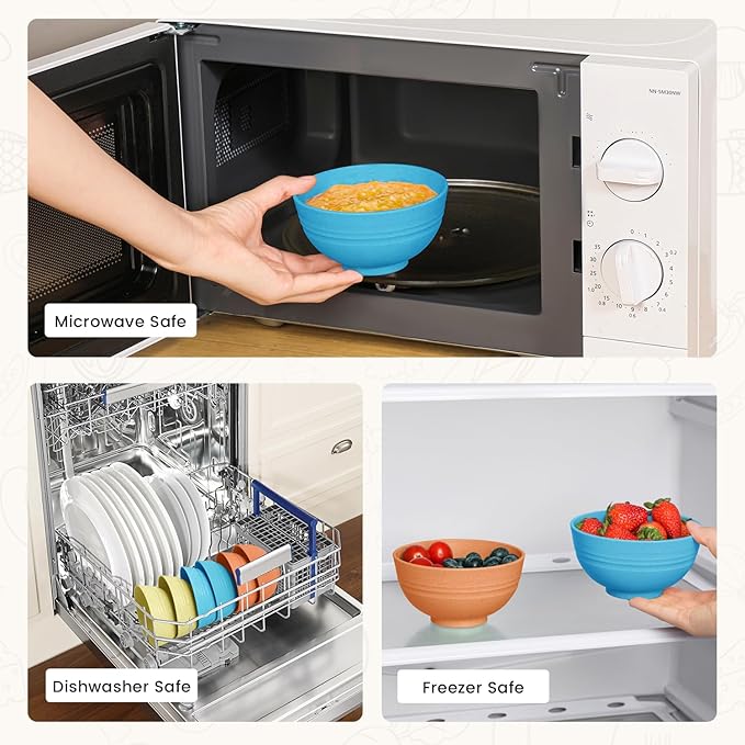- 【Safe Materials】Enjoy a meal with PYRMONT Wheat Straw Small Bowls Set Service for 6.Made with high-quality wheat straw fiber,these colorful small bowl serving for 6 are 100% BPA-free,non-toxic,odorless.perfect safe to use for kids,adults or seniors.These small bowls set of 6 are Microwave Safe ,Dishwasher safe and Freezer Safe.Note:The microwave temperature resistance reaches up to 248 degrees Fahrenheit(120℃)