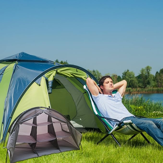 - 【Sturdy & Weather-resistant】Constructed from durable, breathable 210D oxford fabric with a PU2000mm coating and reinforced with 6.9mm fiberglass poles, each shelf features reinforced panels capable of supporting up to 30lbs. This camping closet is built to withstand rain, mud, dust, and other outdoor elements, ensuring long-lasting performance.