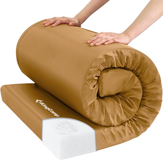 - EASY ROLL-UP & PORTABLE DESIGN – Equipped with an innovative roll helper, this memory foam camping pad rolls up tightly for compact storage and easy transport. Lightweight yet supportive, it includes strong carry handles that won’t tear, making packing up after camping trips fast and hassle-free.