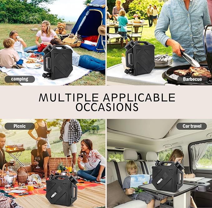 - MULTI-PURPOSE CAMPING WATER CONTAINER: Whether you are camping, preparing for an emergency, or need to store water for outdoor activities, this multi-purpose portable camp water jug is suitable for a variety of situations, such as storing drinking water, rice, camping, outdoor hiking, barbecue, picnic, emergency storage, providing a reliable solution for water needs at home or on the go