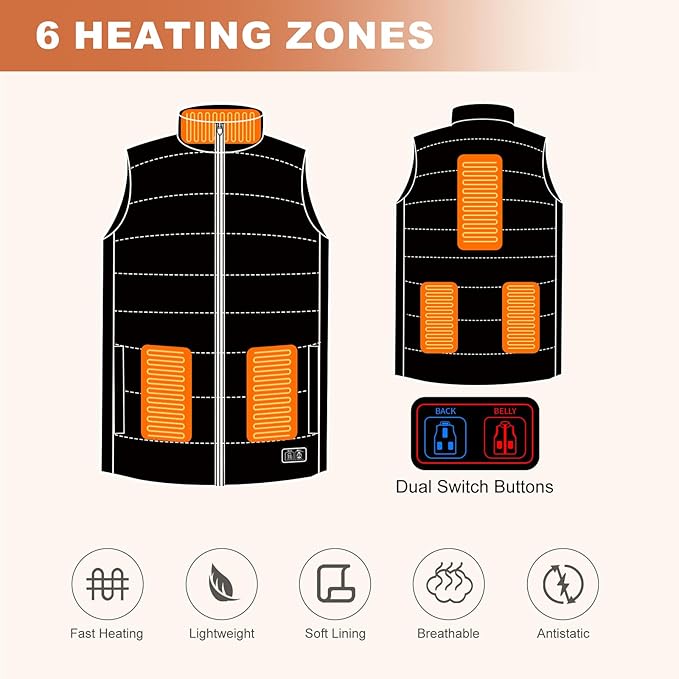 Heated Vest, Lightweight Electric Heated Vest for Men Women 6 Heating Zone 3 Temperature Heating Vest