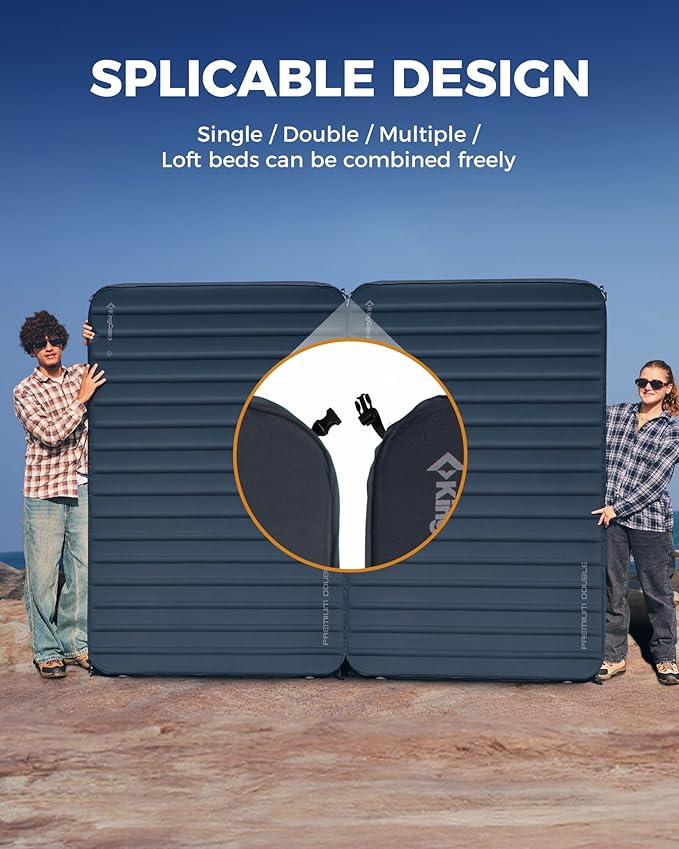 - DOUBLE SLEEPING PAD WITH INTERLOCKING SYSTEM FOR VERSATILITY: Designed for two people, this Queen-sized sleeping pad offers ample space and comfort. Plus, the interlocking buckle system allows you to easily connect multiple pads, making it suitable for solo, couple, or group use, as well as for high beds or custom sleeping setups. With dimensions of 79 x 50 x 3 inches, it provides generous room for a restful night.