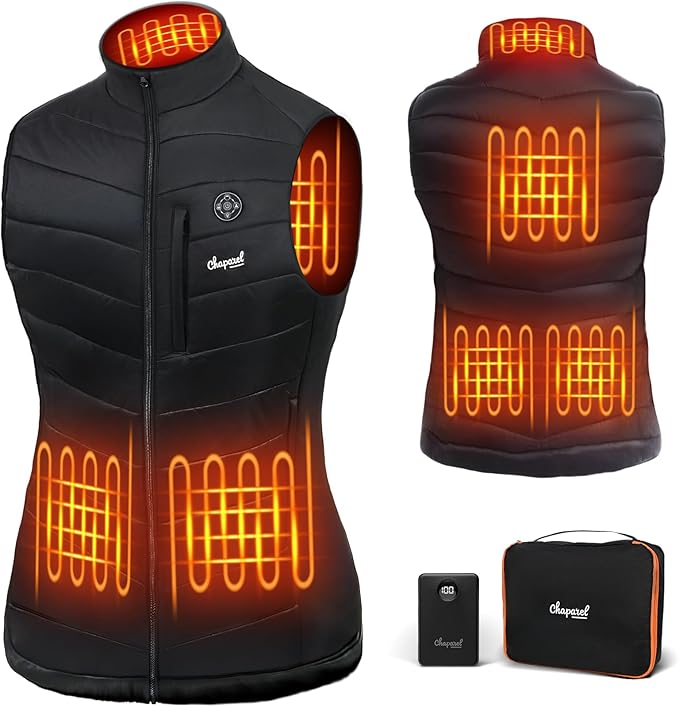 - 🔥 TEMPERATURE CONTROLABLE - CHAPAREL women's heated vest features 3 adjustable heating settings, easily controlled with a simple button press. Blue indicates low heat (113℉), white signifies medium heat (131℉), and red represents high heat (149℉). It provides warmth to neck, waist (left & right), back, and abdomen (left & right), total 6 targeting areas where your body loses heat the most. Furthermore, the individually controlled design enhances both power efficiency and durability.