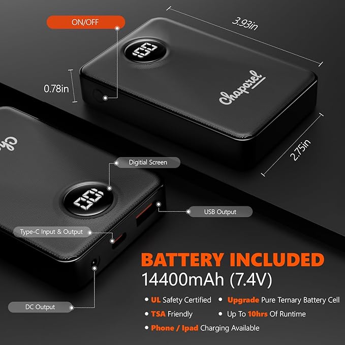 - ⚡ QUICK HEATING & LONG-LASTING WARMTH - Enjoy fast heating in seconds with the 7.4V UL/CE-certified 14,400mAh battery (INCLUDED). Provides up to 7-10 hours of gentle warmth (Low Heat) on a single charge. The Womens heated vest includes a battery pack and USB charging cable for convenient use (Also suitable for charging smartphones). The built-in digital display allows easy monitoring of power usage. 📝 Warm Tips: Please take a close look at the size chart in figure 6 before making your purchase.