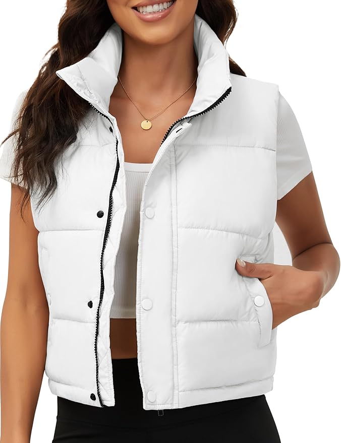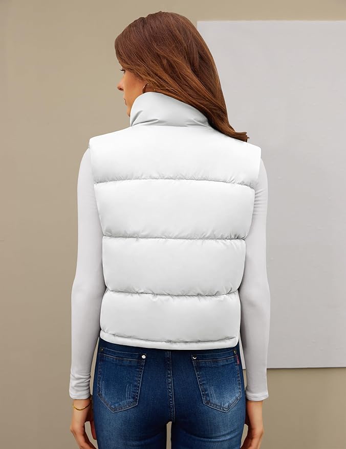Fengbay Womens Puffer Vest Sleeveless Puffy Cropped Vests Stand Collar Vest Lightweight Bubble Quilted Vests Trendy 2025