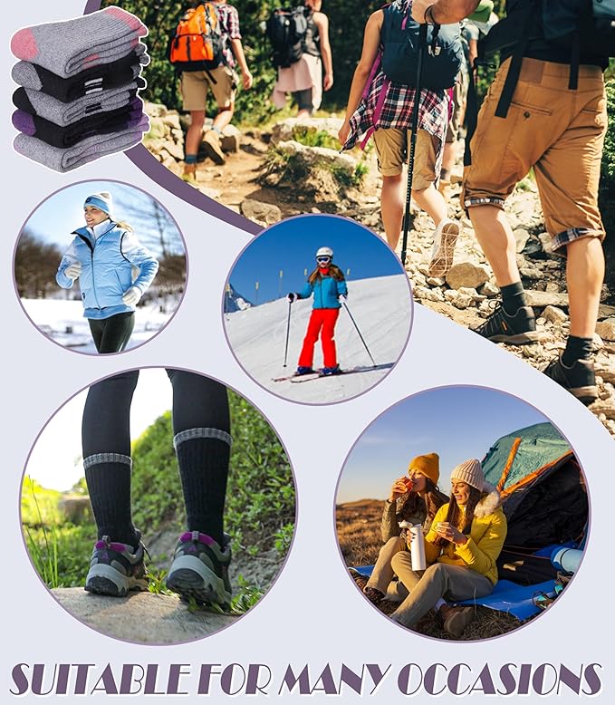 DYW Womens Merino Wool Hiking Socks Thermal Warm Winter Boot Crew Socks Cushion Work Walking Gift Socks 5 Pairs