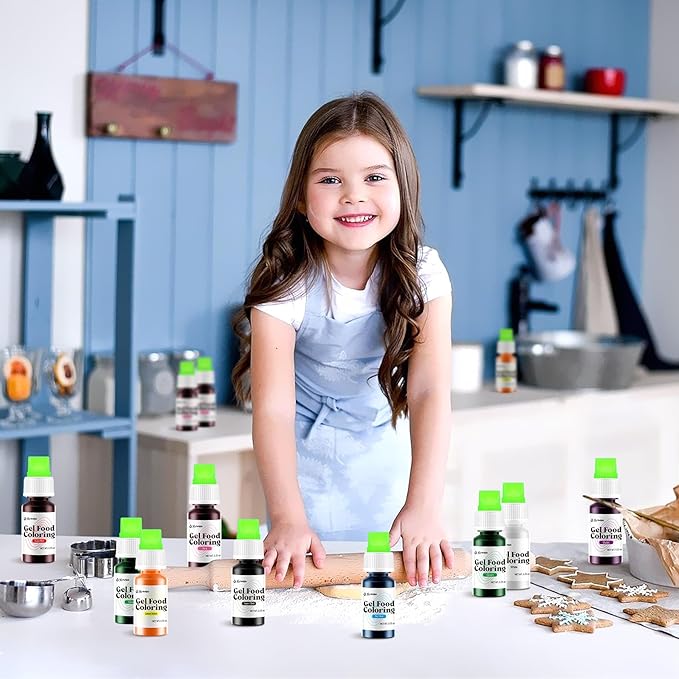 - [ Wide Application ] The gel food coloring is widely used for icing, frosting, buttercream, batter, cakes, cupcakes, and cookies. The food color is great for beginners and professionals decorate desserts on Valentine's Day, Birthday, Christmas; food dye kit also can be used for kids slime, soap, bath bombs and DIY crafts kit, great gift for kids.