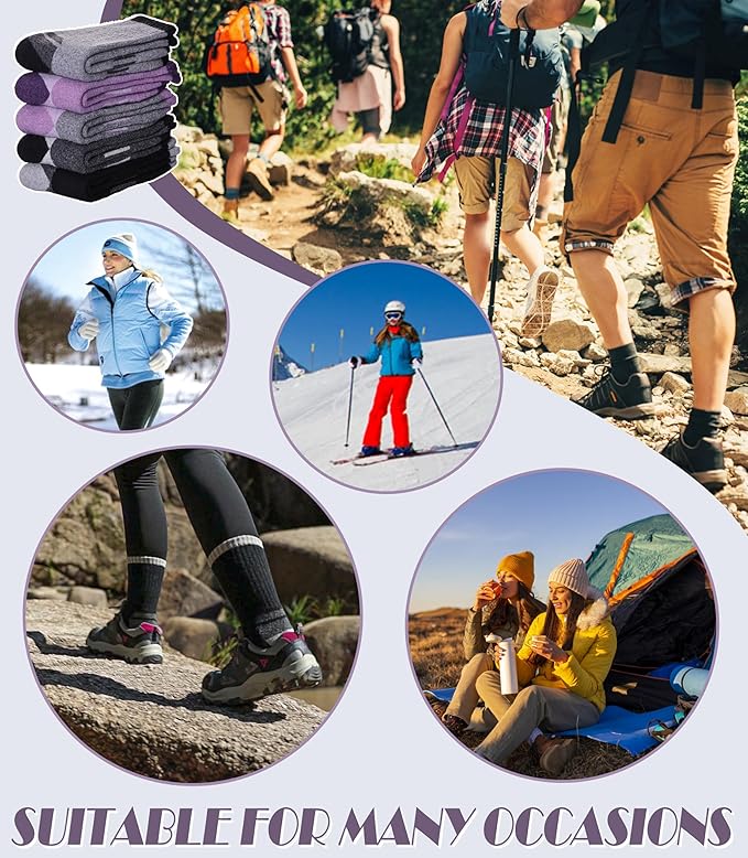 DYW Womens Merino Wool Hiking Socks Thermal Warm Winter Boot Crew Socks Cushion Work Walking Gift Socks 5 Pairs