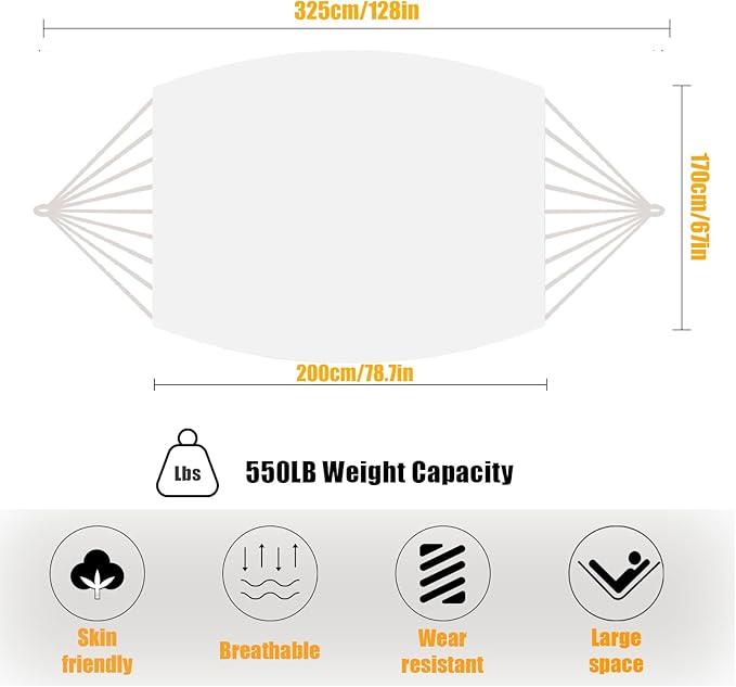 - ✬Large Hammock: Standard XL large hammock can easily and comfortably accommodate two person to unwind together to enjoy the relaxing moment. Best choice as a family hammock.