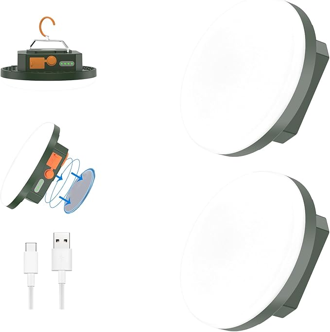 2pcs 10000mAh Rechargeable 3000LM Tent Light Camping Light, 6500K 24Hours Long Play Time , Outdoor Night Market Light Night Fishing Light Emergency Lights for Hurricane Tsunami disasters (Green)