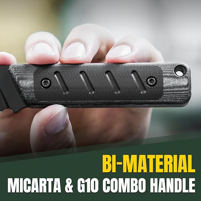- G10 & Micarta Handle: kizer knives take reference from the Smolt's shape and feature a Drop Point shape and a regular curved handle with 4 grooves on the handle to increase grip and aesthetics, a minimalist design