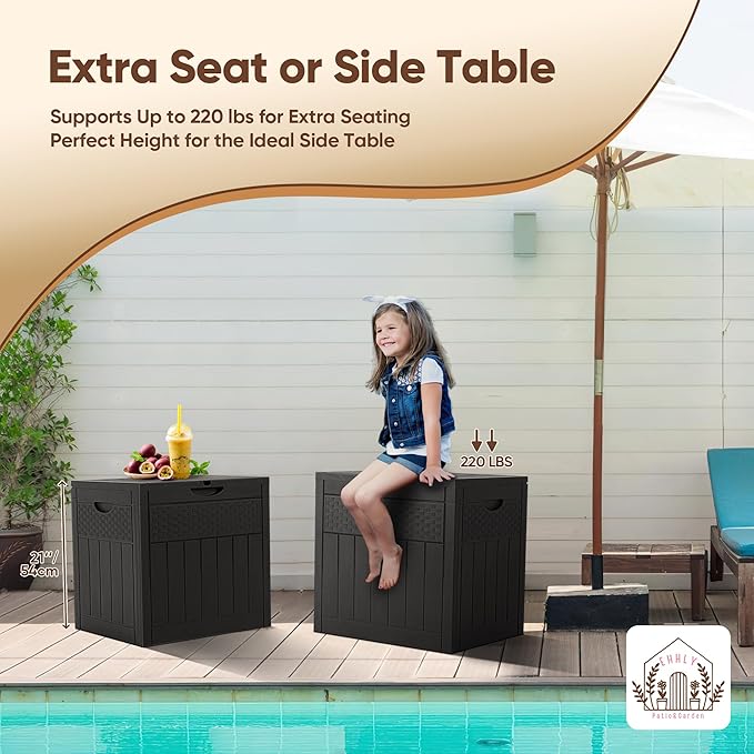 - Robust Build: Boasting a top load-bearing capacity of 170 lbs, this deck box ensures sturdy support for various outdoor items, making it an ideal storage solution for your patio or porch.
