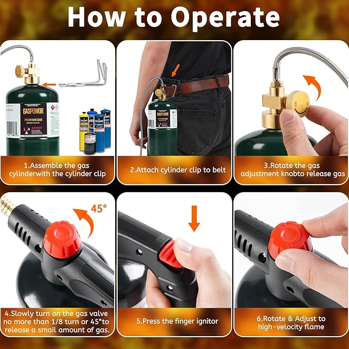 - Please note: Propane Tank is Not Included. Read the instructions before installing the propane torch,Always check gas leakage before operation.