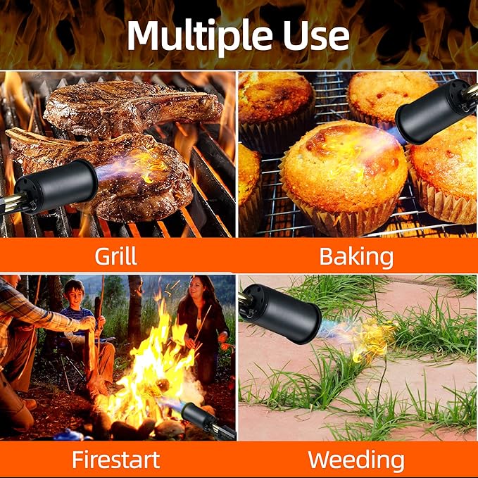 - 【Extremely Powerful Searing Torch】Unleash the full potential of your cooking with our high-performance searing torch. With a maximum temperature of up to 3500°F, it delivers an intense flame perfect for searing, caramelizing, and creating a crispy crust on meats, vegetables, and desserts. Whether you're grilling or cooking in the kitchen, this fire lighter provides precision control over your cooking process.