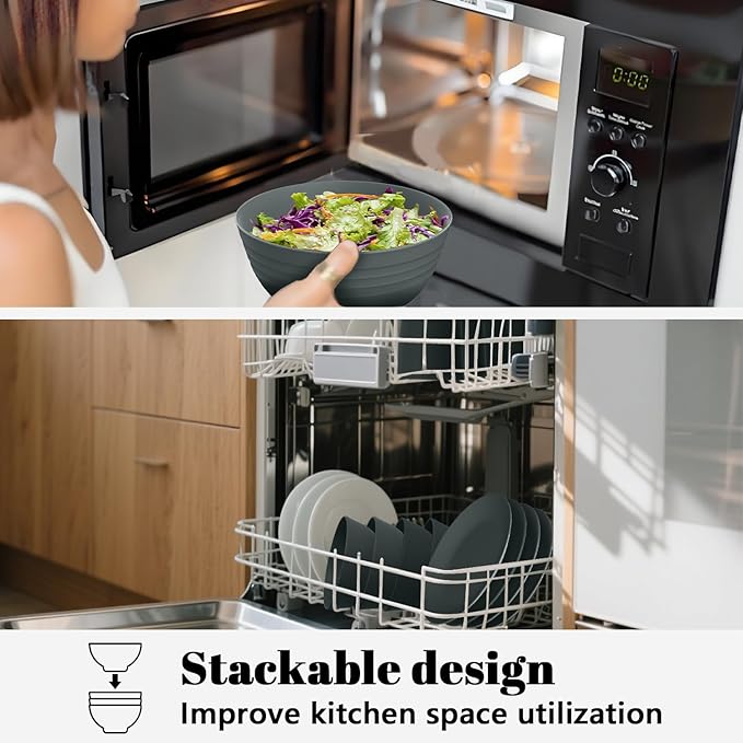 - 【Microwave and Dishwasher Safe】 These plastic plates and bowls sets are easy to clean as they are dishwasher safe. They can also be used in microwave and freezer. Note: Maximum temperature resistance is 248℉/120℃