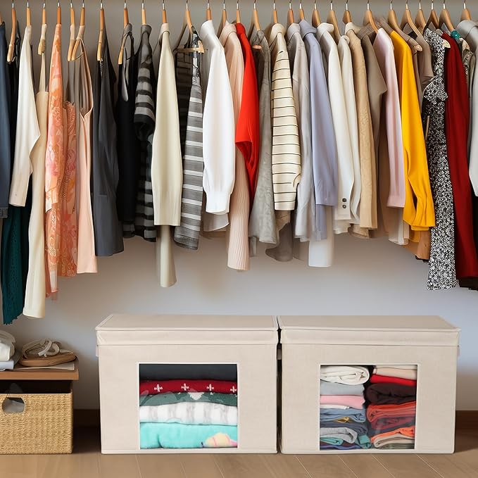 - 【Larger See-Through Window 】 - The clear see-through window is very user friendly for clearly showing what is inside the cloth storage box, easy to organize and easy to find.