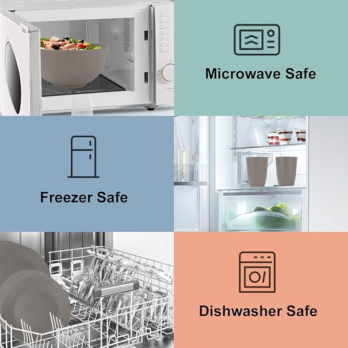 - 【Microwave & Dishwasher Safe】 The wheat straw dinnerware can be easily cleaned in dishwasher which saves your effort in kitchen. They can also be used in microwave and freezer without getting too hot. Note: Maximum temperature resistance is 248℉/120℃. The stackable designs save space in your kitchen cabinet and disk rack.