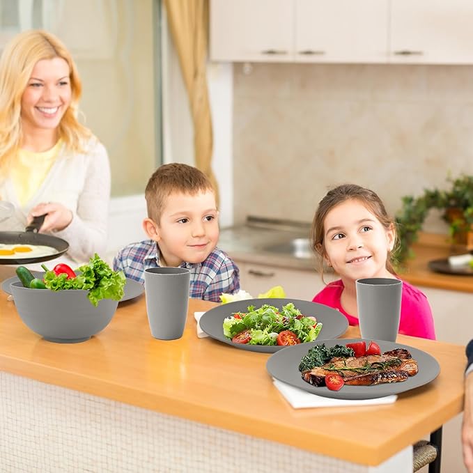 - 【Lightweight & Unbreakable】 BUSOKIP dinnerware sets are lightweight, sturdy and break resistant because of the wheat straw material. The plates and bowls won't break if accidentally dropped compared to porcelain tableware and glasses. Round smooth edge and non-slip bottom help keeping your table organized.
