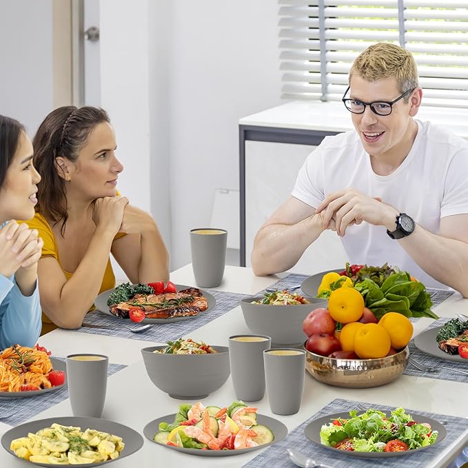 - 【Wheat Straw Fiber】 The bowls and plates sets are made of wheat straw fiber and food-grade PP which are BPA free. The stylish dinnerware set can perfectly match your existing tableware whether classic or modern.